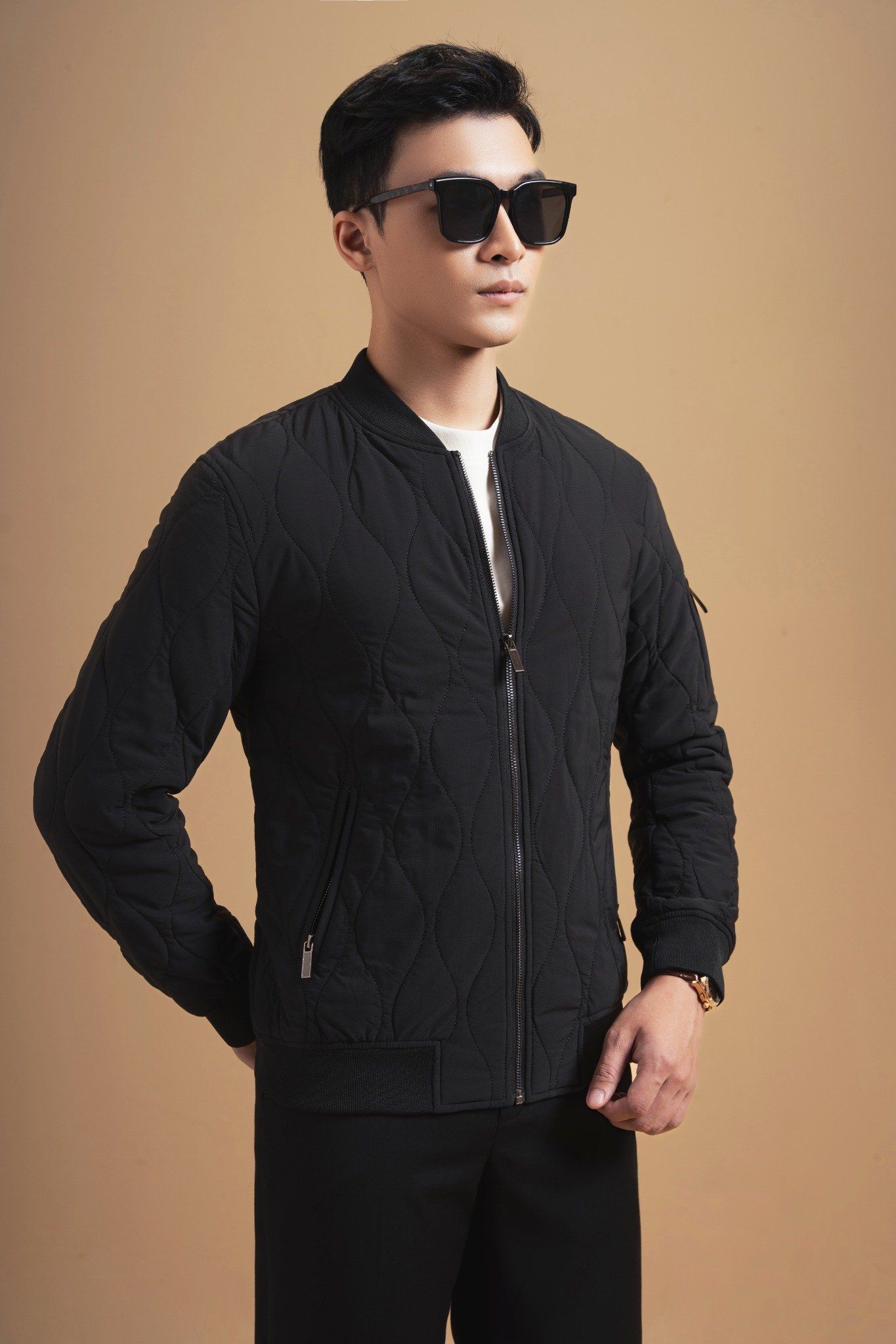 ▪️ Kiểu dáng: Bomber jacket cổ điển, nam tính. Sản phẩm được thiết kế dựa trên quy trình nghiên cứu kỹ lưỡng phom dáng đàn ông Việt Nam giúp tôn lên hình thể người Châu Á với phần vai và ngực nở rộng.