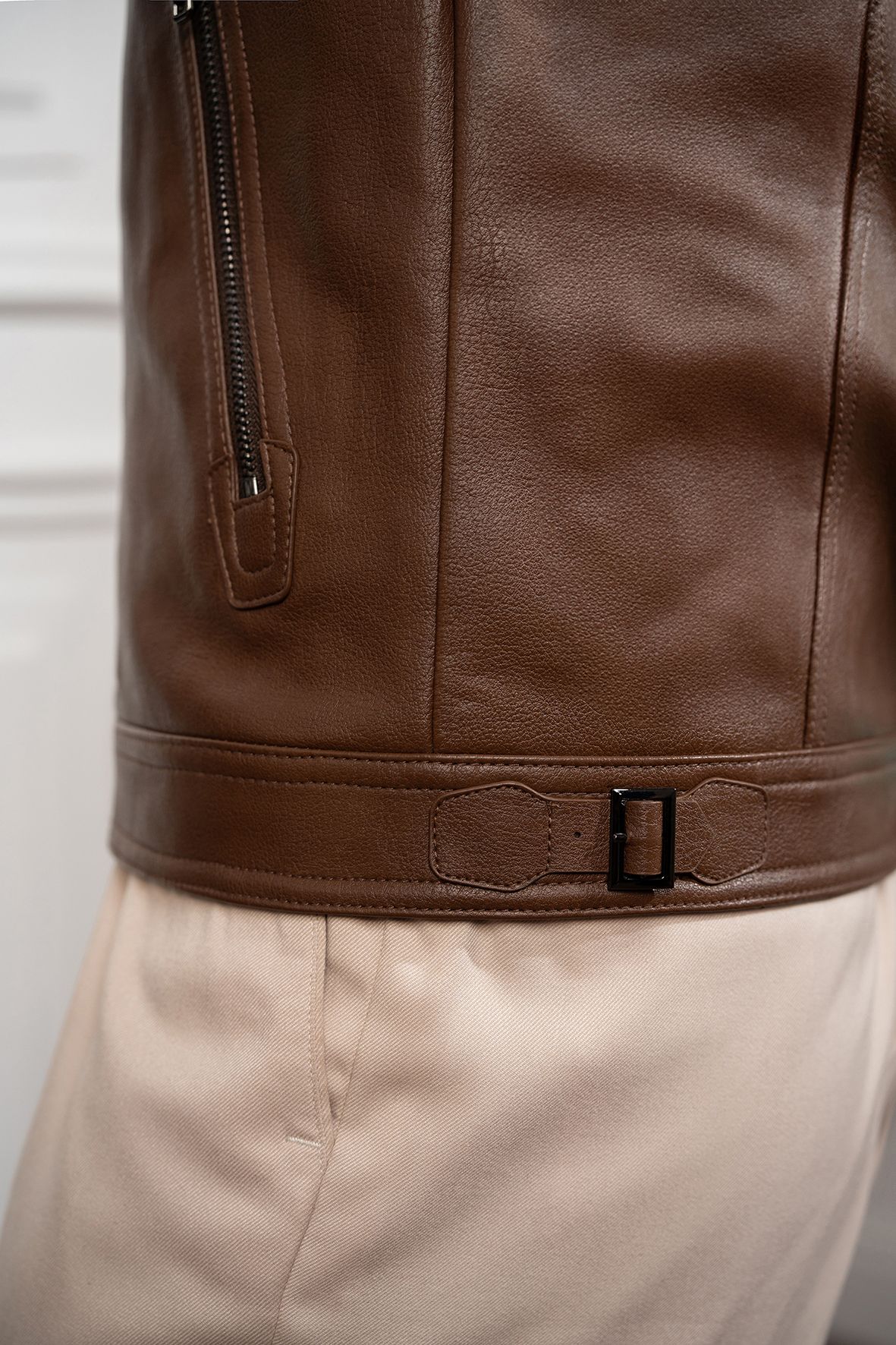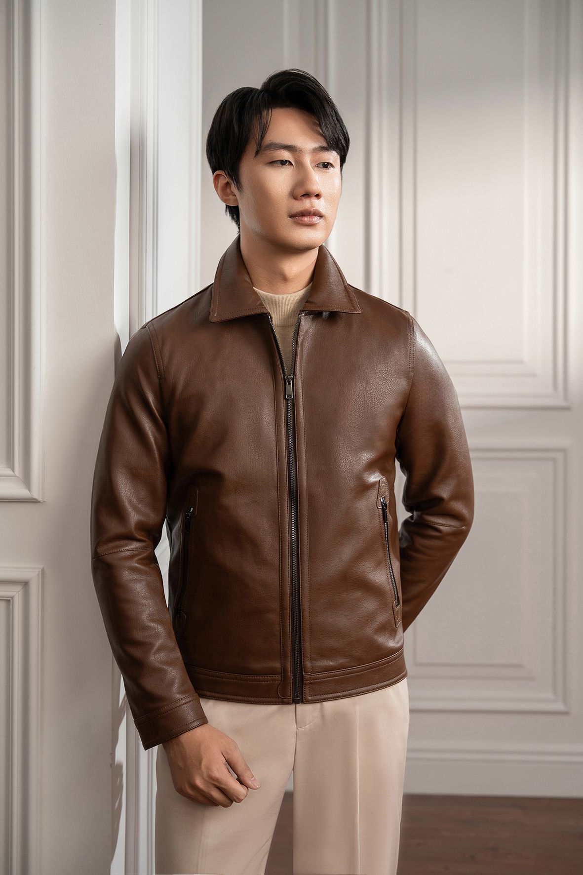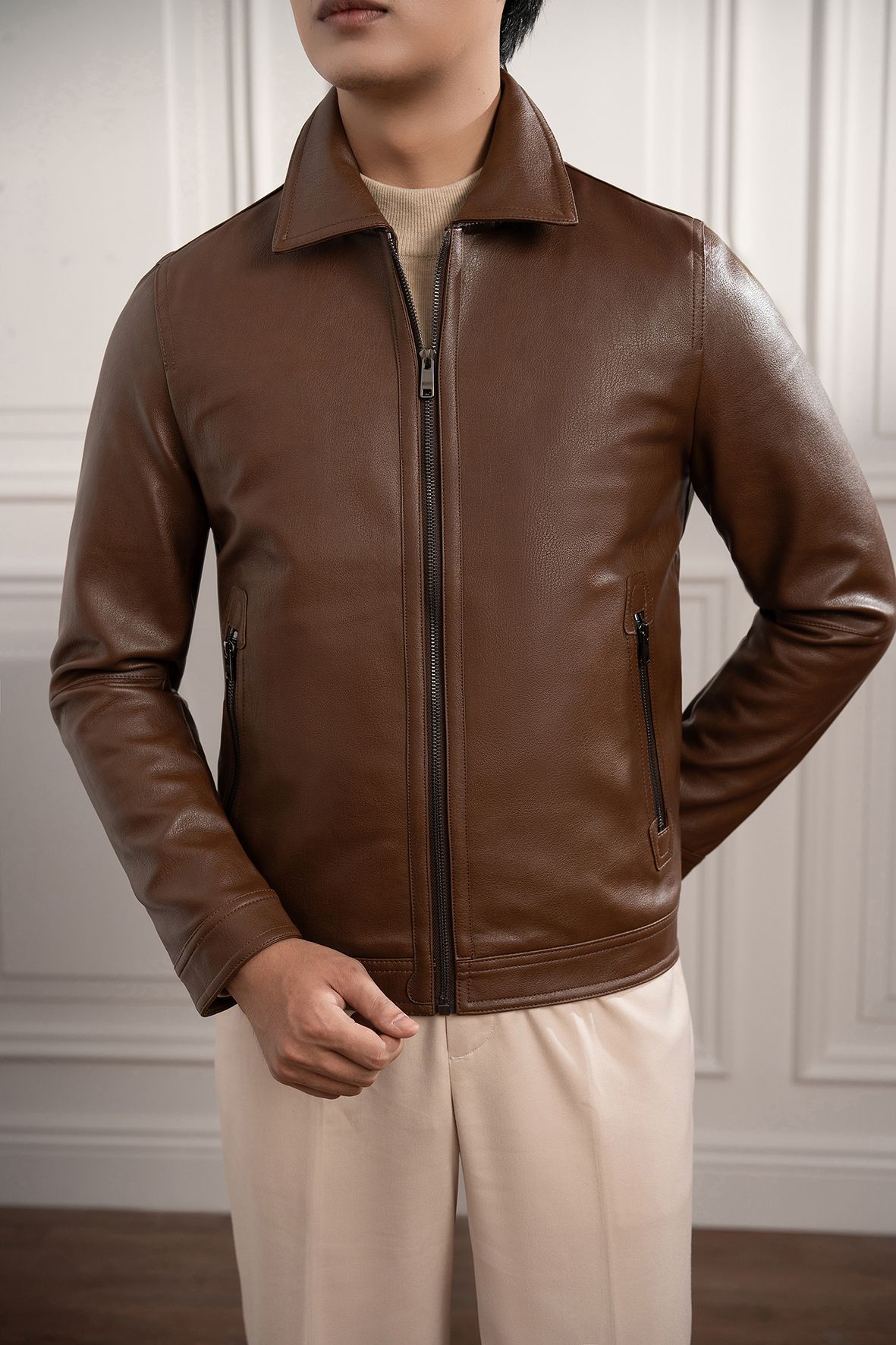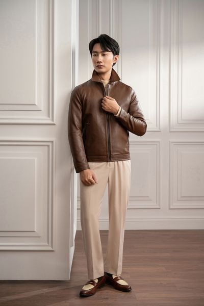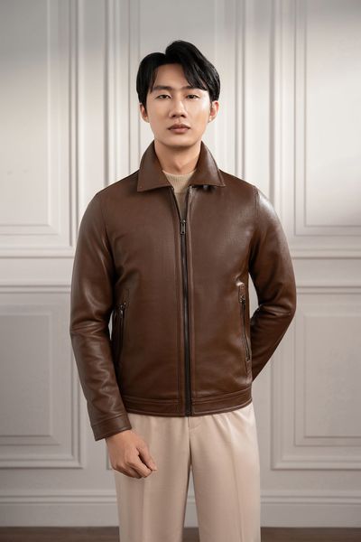 Áo khoác da nâu trơn - AK061N