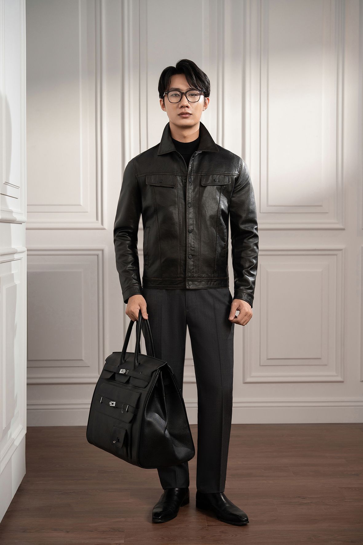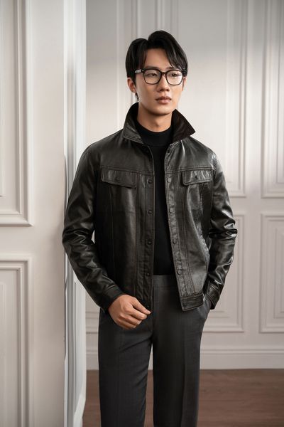 Áo khoác đen da - AK063D