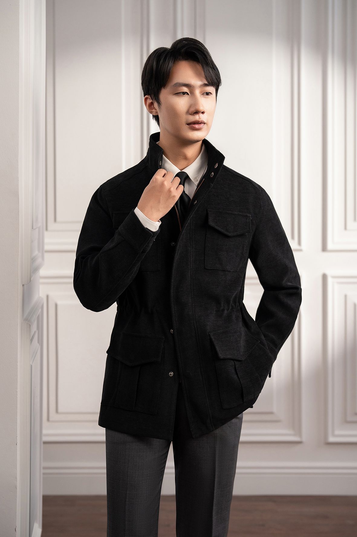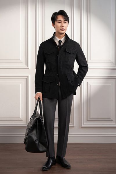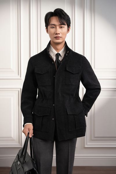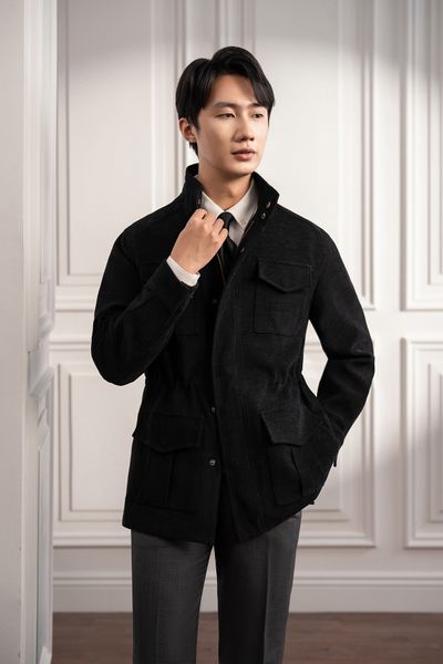 Áo khoác Safari đen trơn - AK083