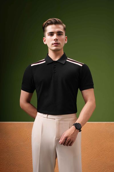 Áo polo đen đáp vai trắng kẻ đen - AP170D