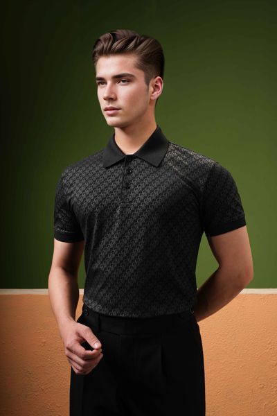 Áo polo đen họa tiết - AP174D