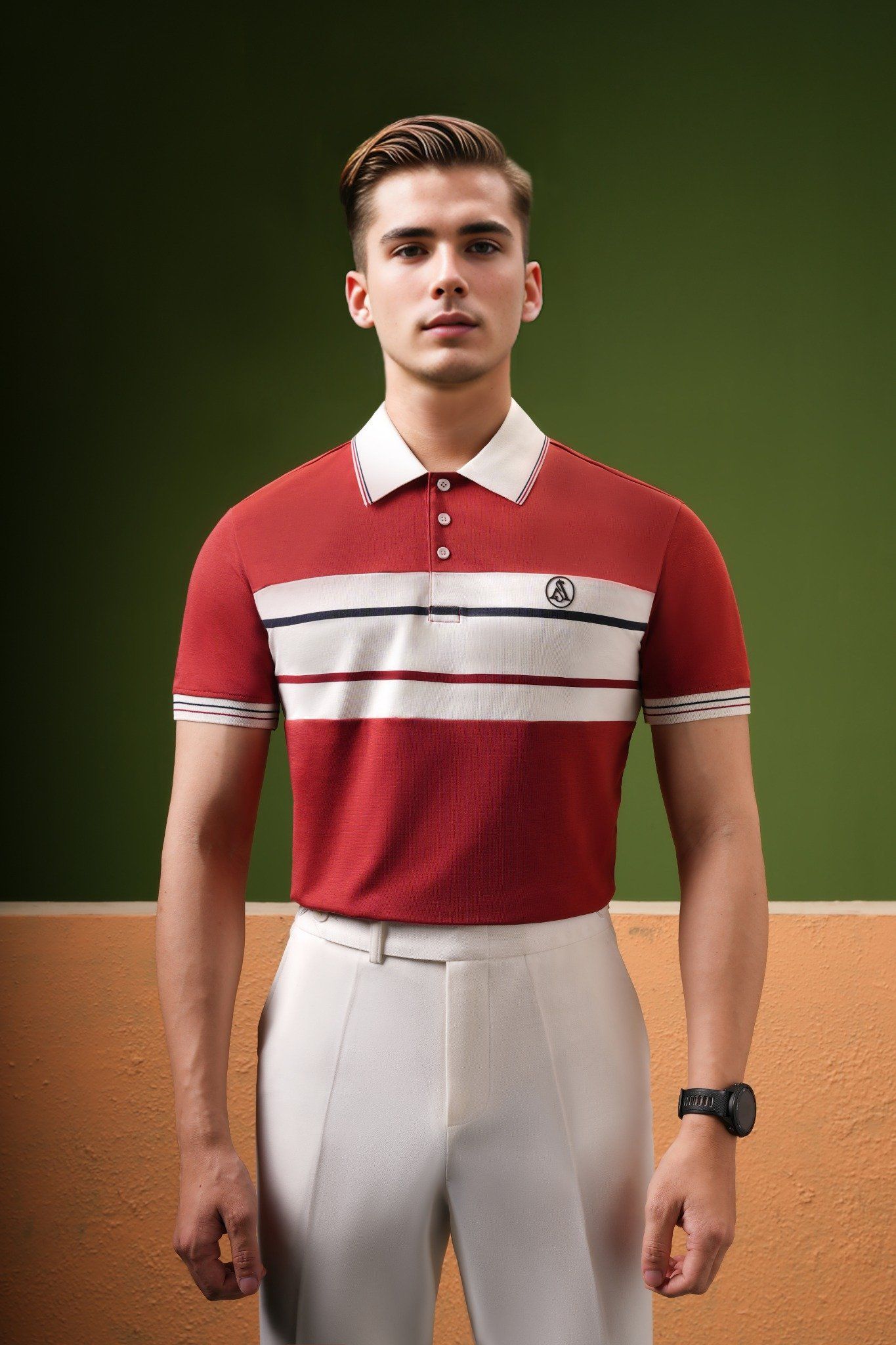 Áo polo đỏ họa tiết ngực kẻ trắng - AP149