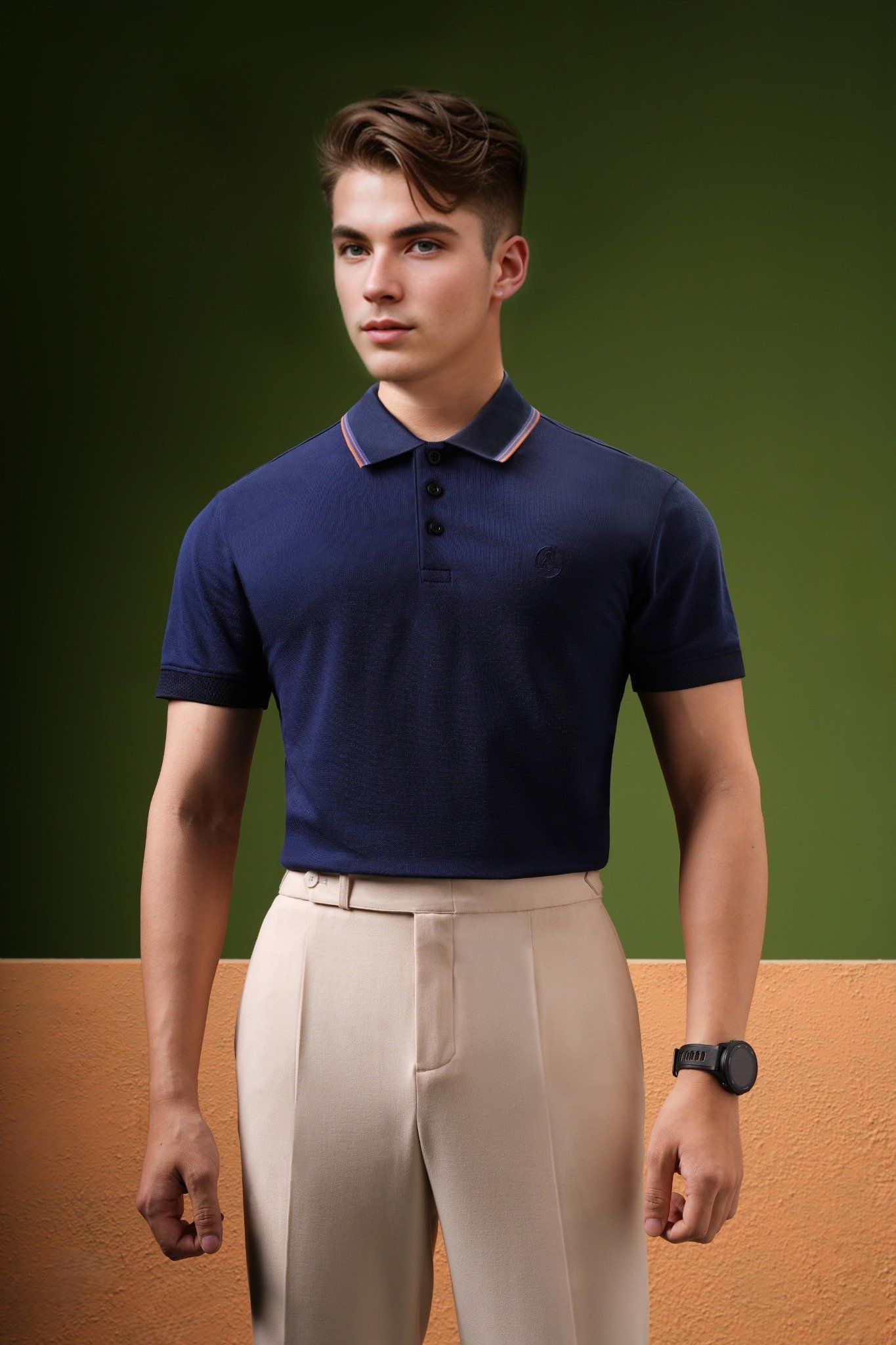 Áo polo xanh họa tiết cổ viền cam - AP148X
