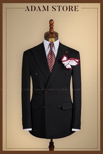Áo Vest Adam Đen 2 Hàng Khuy Họa Tiết Herringbone - Av332Cq