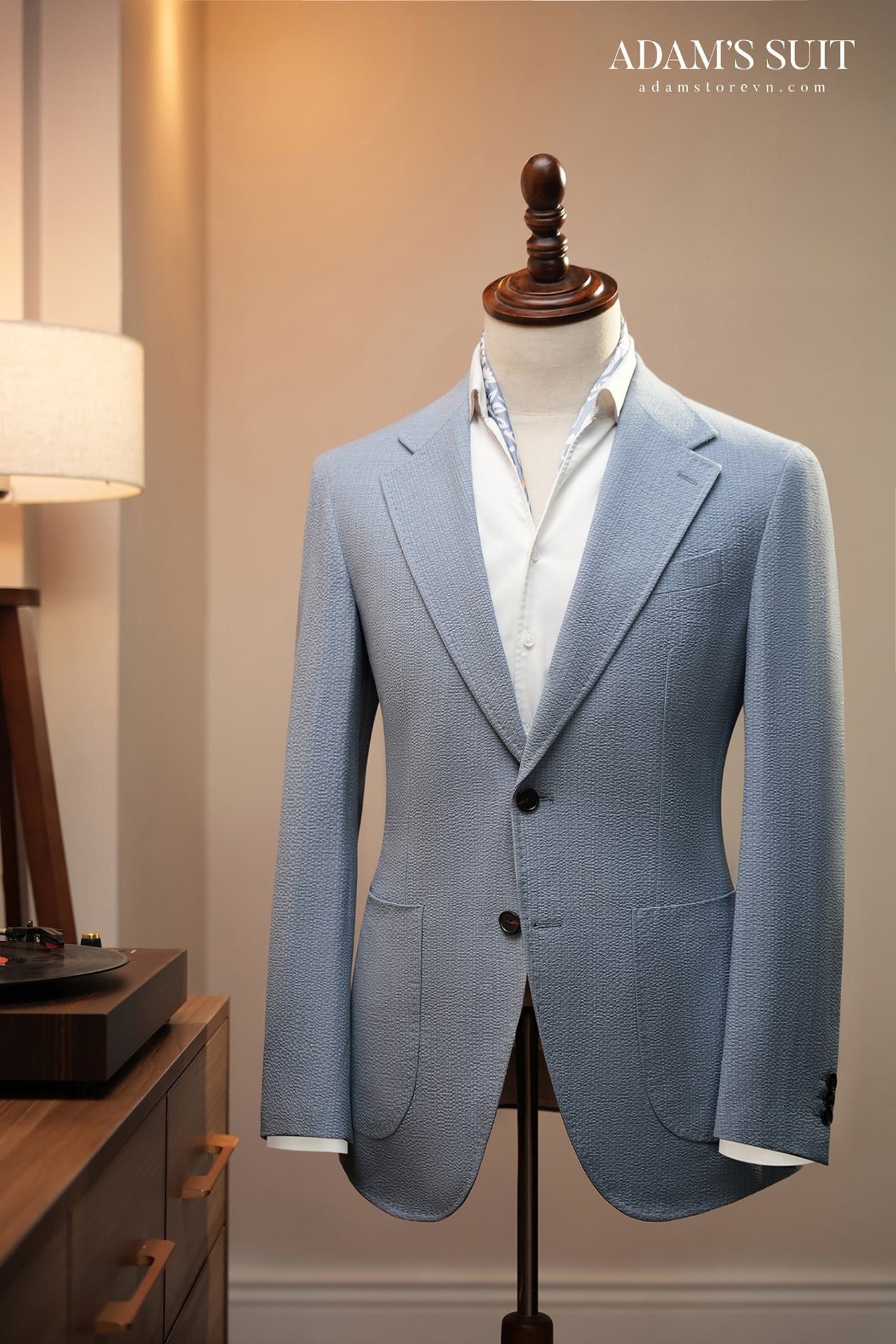 Áo vest xanh trơn sọc chìm 2 hàng khuy - AV429CQ