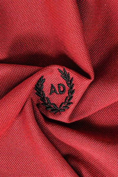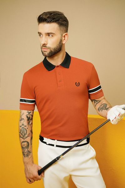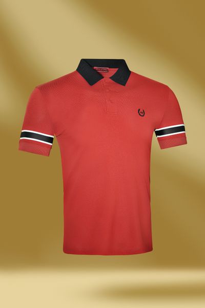 - Polo đơn sắc với tone đỏ chủ đạo kết hợp với cổ áo đen tương phản và họa tiết tay tạo nên sự nhẹ nhàng đơn giản nhưng không kém phần tinh tế và lịch lãm