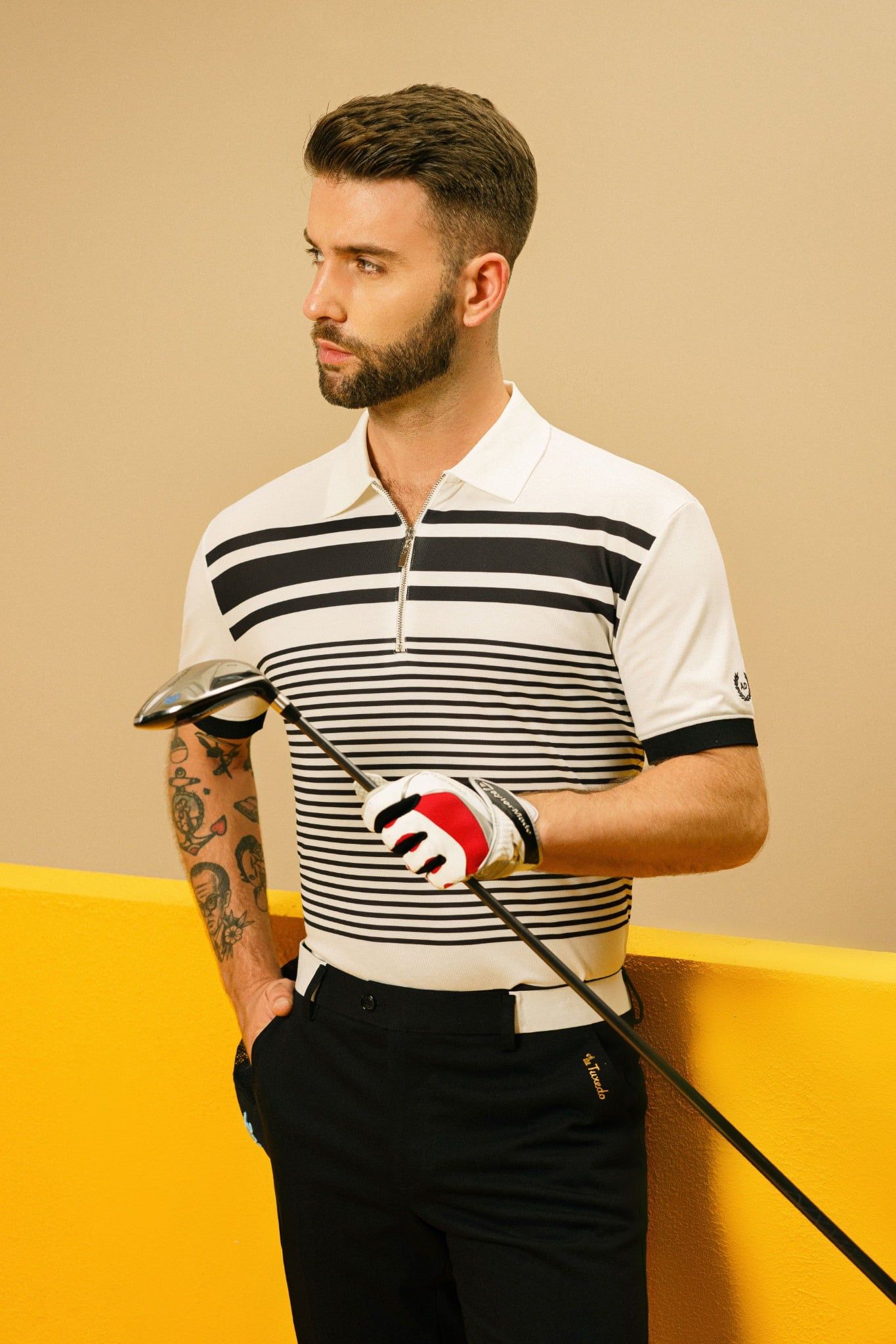 Áo Polo Đen Kẻ Khóa Kéo - Ap054