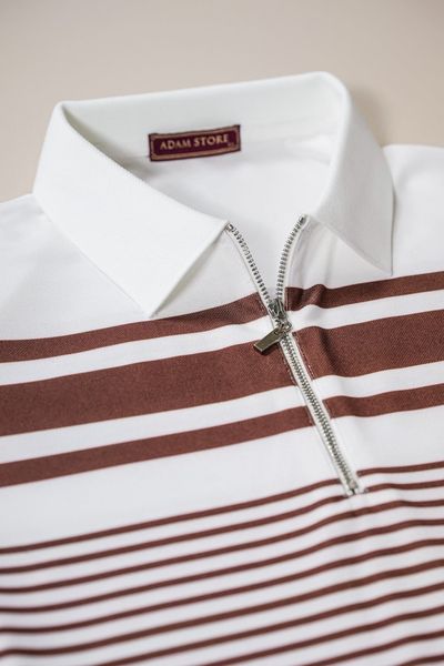 Áo Polo Nâu Kẻ Khóa Kéo - Ap055