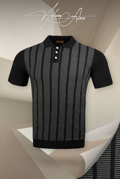 Áo Phông Mongtoghi đen họa tiết kẻ sọc - AP117