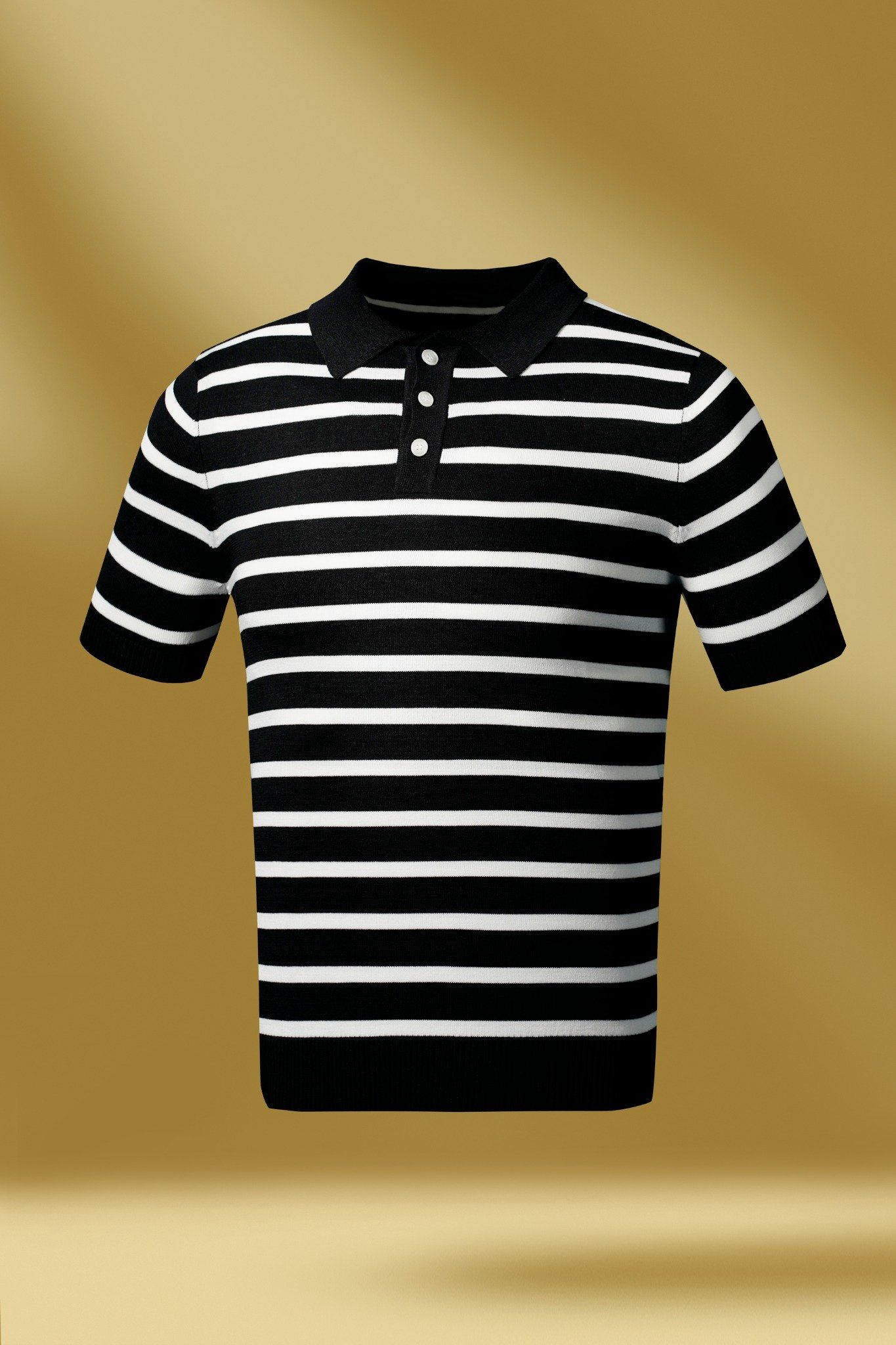 Áo Phông Mongtoghi Đen Kẻ Trắng - Ap075D
