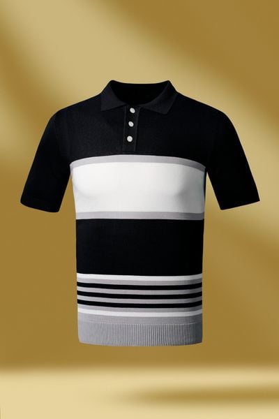 Áo Phông Mongtoghi Đen Kẻ Trắng - Ap080D