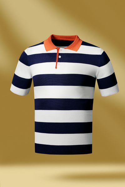 Áo Phông Mongtoghi Xanh Kẻ Trắng Pha Cổ - Ap082