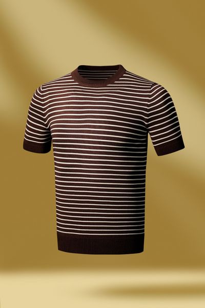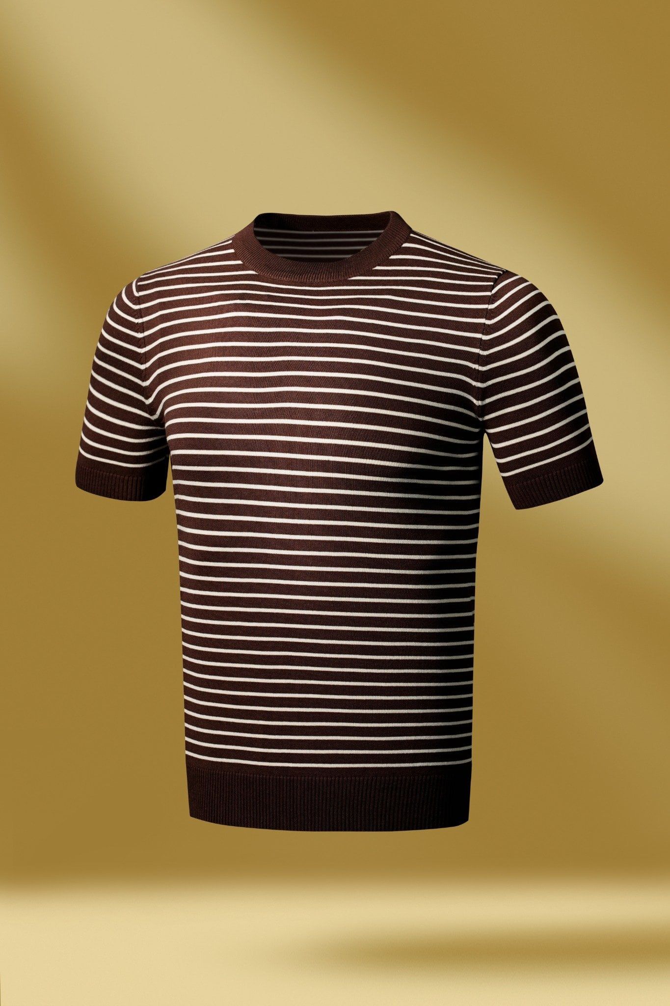 Áo Phông Mongtoghi Nâu Kẻ Cổ Tròn - Ap078N