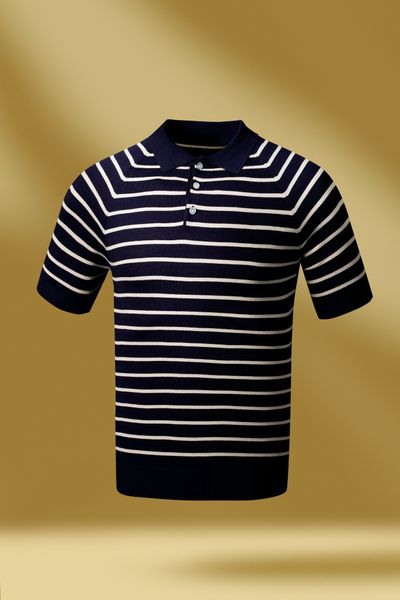 Áo Phông Mongtoghi Xanh Đậm Kẻ Trắng - Ap091
