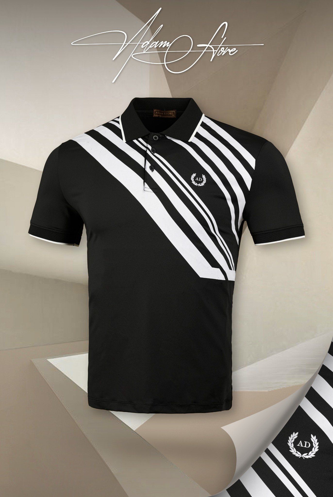 Áo polo đen kẻ trắng - AP133