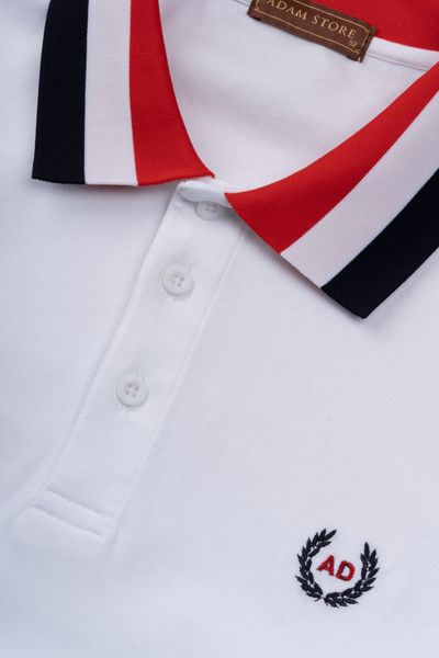 Áo Polo Trắng Pha Cổ Kẻ Xanh Đỏ - Ap106