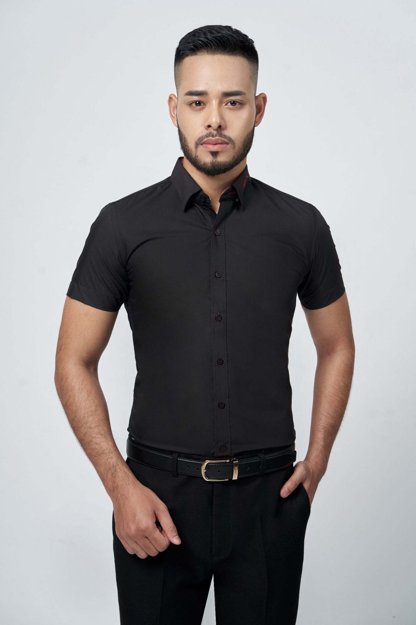 Sơ Mi Adam Ngắn Tay Đen - Sdttkn01