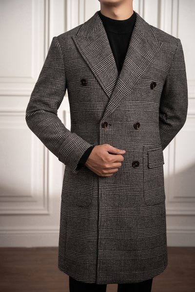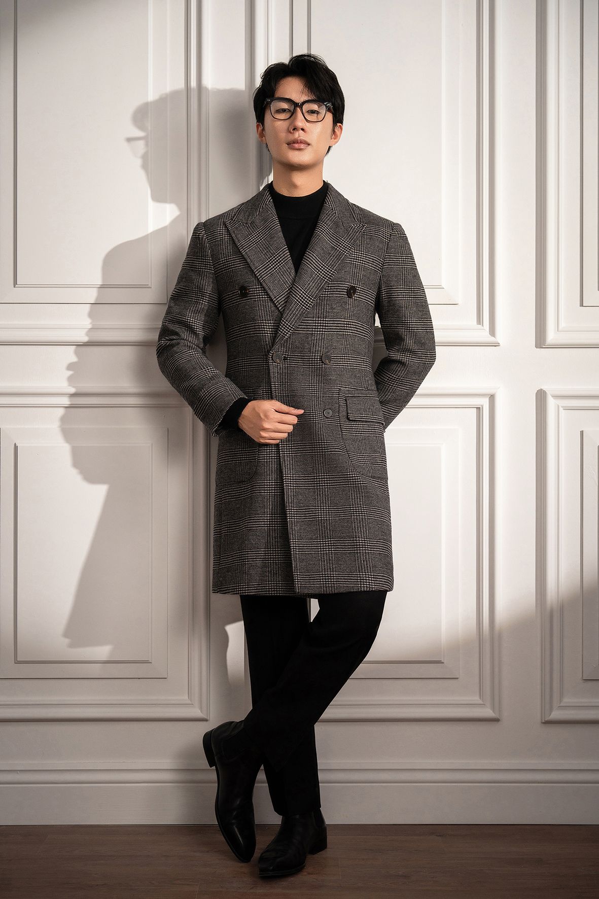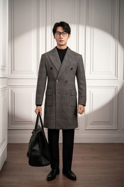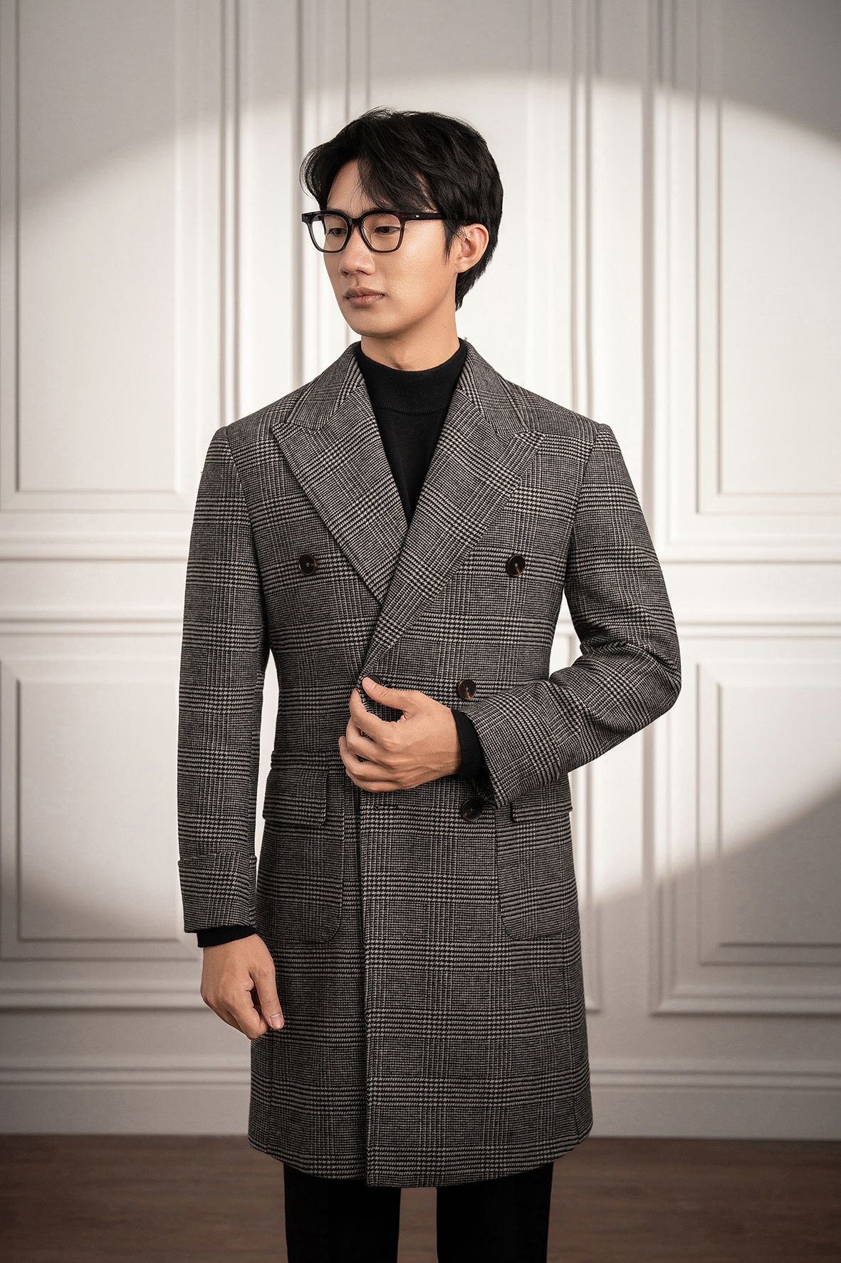 Măng tô be trơn 2 hàng khuy túi ốp - MT004
