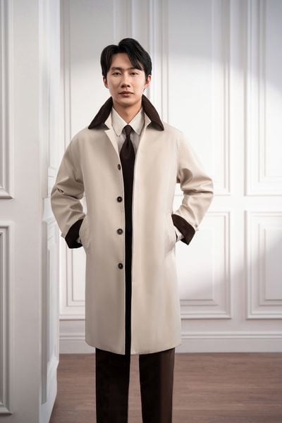 Măng tô be trơn 2 hàng khuy túi ốp - MT004