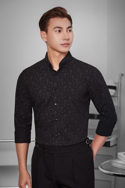 Áo Sơ Mi Dài Tay Màu Đen Họa Tiết Hoa Nhí Adam Store - SMC104