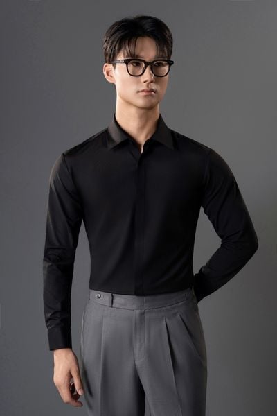 Áo Sơ Mi Dài Tay Màu Đen Trơn Adam Store - SMC118