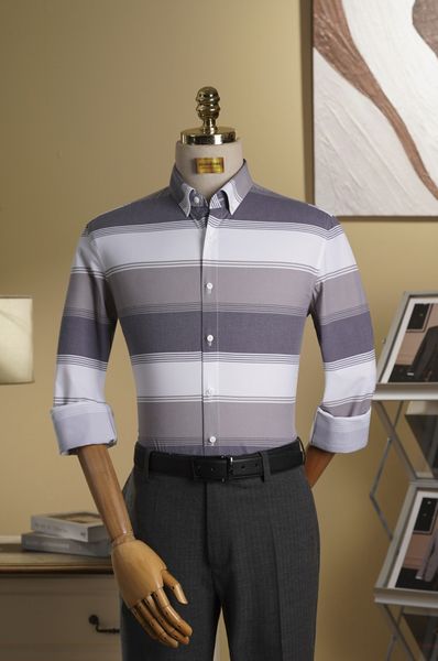 Áo Sơ Mi Dài Tay Màu Trắng Phối Ghi Kẻ Ngang Adam Store - SMC097G