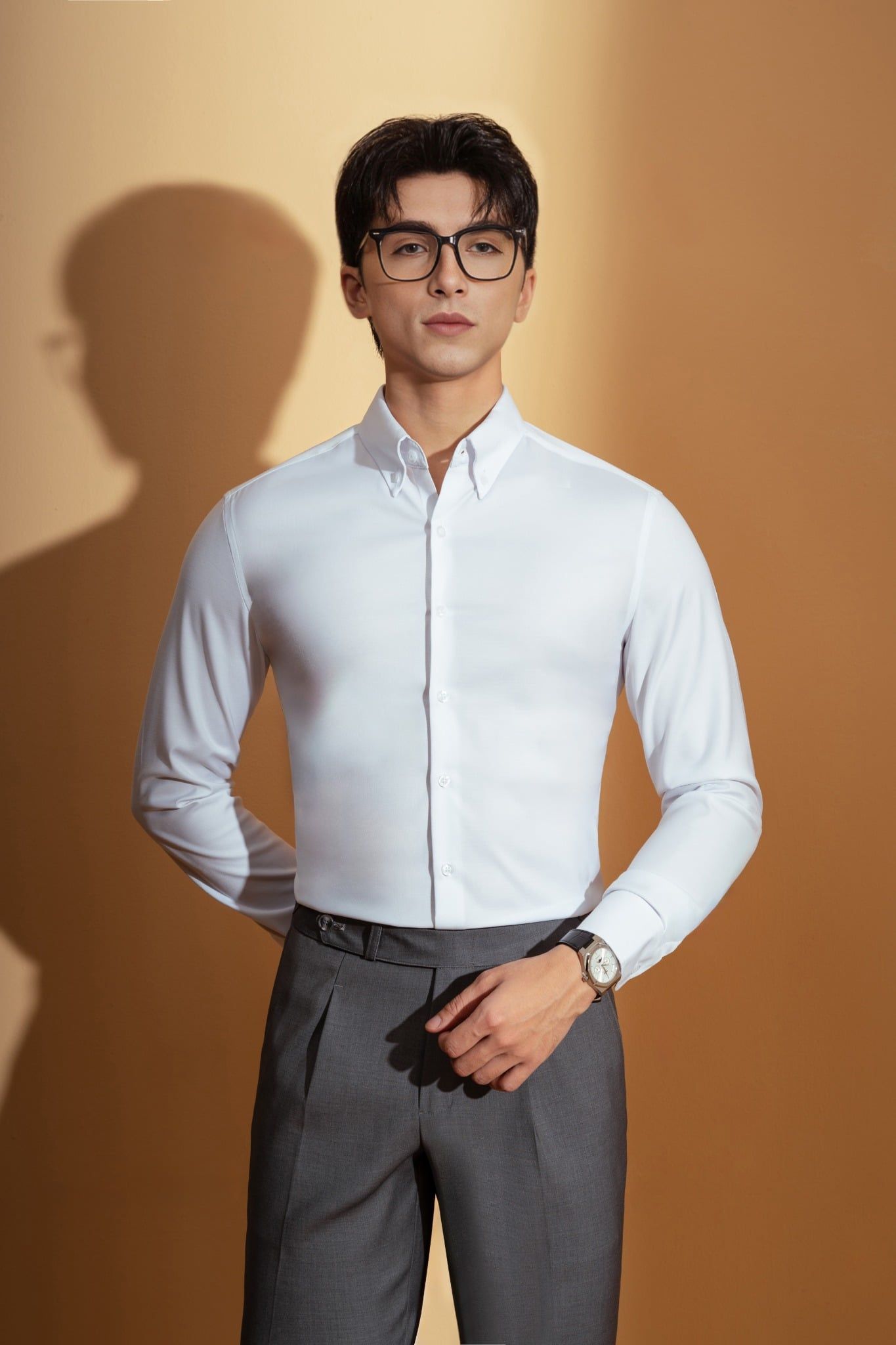 Sơ mi trắng cổ nhọn bấm cúc - TXTK22