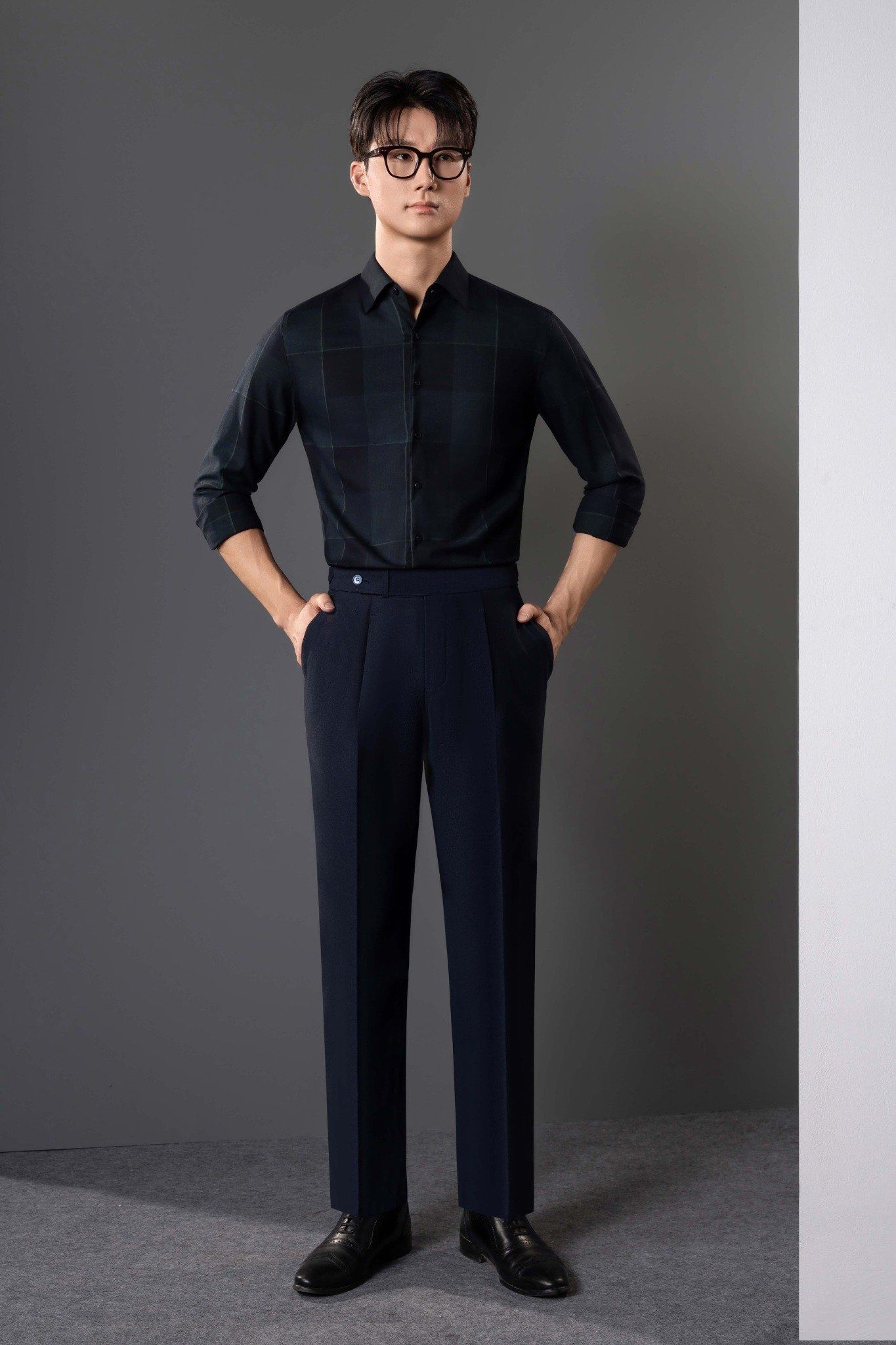 Áo Sơ Mi Dài Tay Màu Xanh Kẻ Vuông Adam Store - SMC142