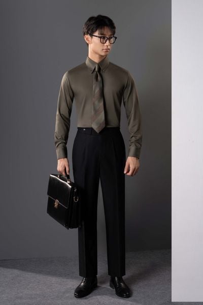 Sơ mi xanh rêu trơn - SMC160XR